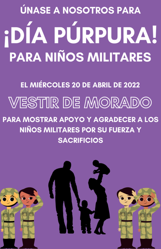 We are encouraging everyone to wear purple on Wednesday, April 20 as a visible way to show support and thank military children for their strength and sacrifices.